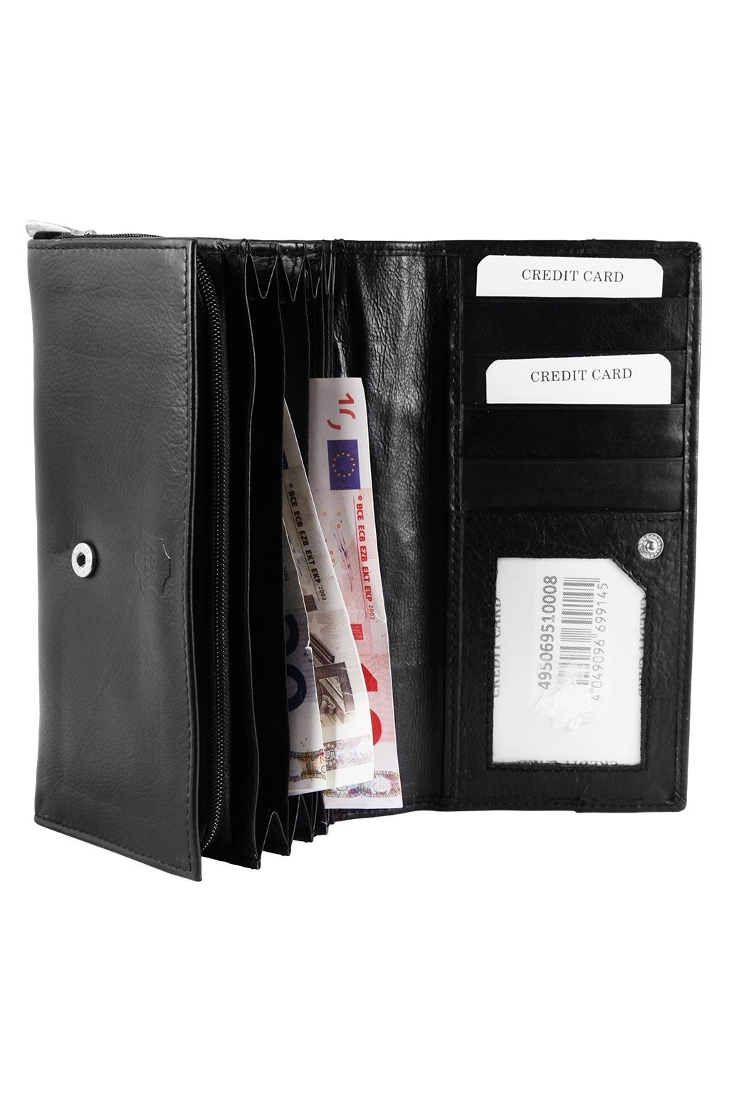 - vnitřní provedení: 8 přihrádek na karty, 5 přihrádek na bankovky, 2 skryté přihrádky na doklady, 1 zipová kapsa na mince, 1 průhledná přihrádka na kartu či fotografii
